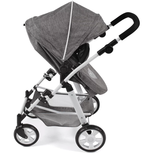 De duwbeugel is in hoogte verstelbaar van ca. 45 tot 84 cm, zodat hij op bijna elke lichaamslengte past. Met luifel en bagagenet voor diverse gebruiksvoorwerpen. De Nele station wagon kan heel gemakkelijk en klein opgevouwen worden.