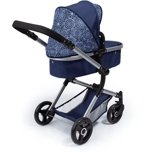 Bovendien kan de schuifregelaar worden gezwenkt, zodat de kinderwagen van beide kanten kan worden aangedreven. Bovendien kan de kuip eenvoudig worden omgebouwd tot een moderne Sport pop of stabiele pop jogger door middel van drukknoppen en eenvoudige positie-omzetting. De hoes van het bad is ideaal om de pop zowel liggend als zittend te beschermen tegen de weersomstandigheden zoals zon en wind. Draaibare voorwielen in een moderne 2-kleurige look maken hem bijzonder wendbaar. Voor de Tran sport kan de poppenwagen zeer eenvoudig worden opgevouwen.