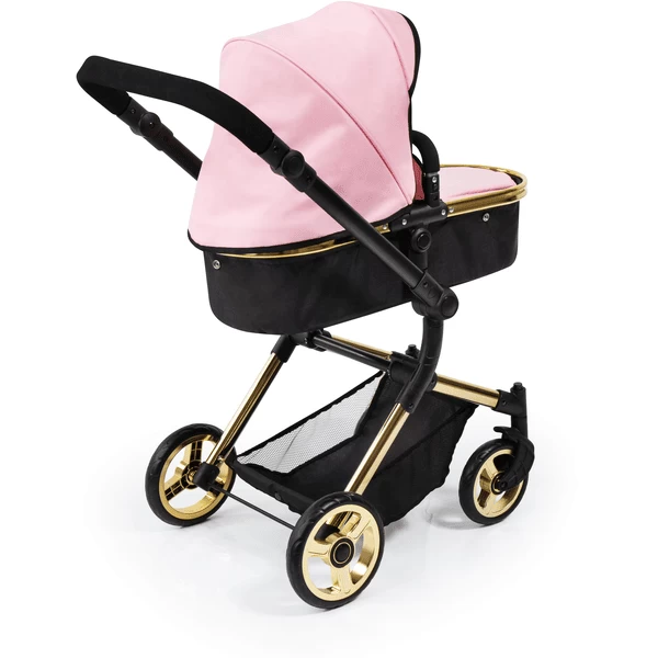 De kuip van de kinderwagen kan zowel in de rijrichting als in de richting van het kind worden opgezet. Bovendien is de duwer draaibaar, zodat de poppenwagen van beide kanten kan worden voortbewogen. Bovendien kan de kuip gemakkelijk worden omgebouwd tot een modern en kinderwagen of stevige poppenjogger door middel van drukknoppen en door eenvoudig de positie te veranderen.