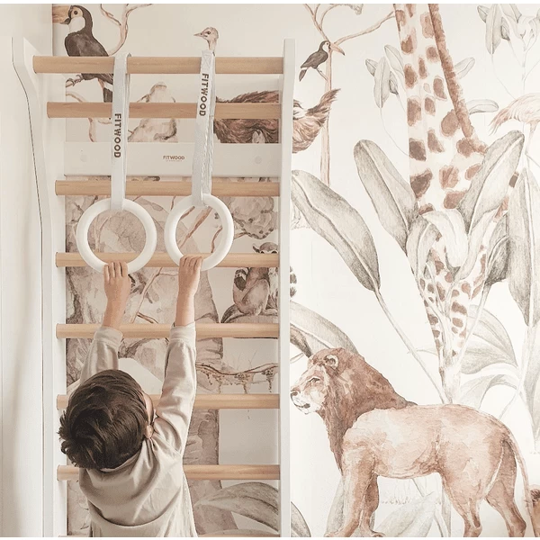 - De turnringen worden geleverd met duurzame FitWood banden waarmee de turnringen aan het plafond of bijvoorbeeld aan de TAIMI MINI wandstangen kunnen worden bevestigd.