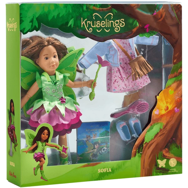 - De set bestaat uit: Kruselings-pop in magische outfit, met accessoires en alledaagse kleding