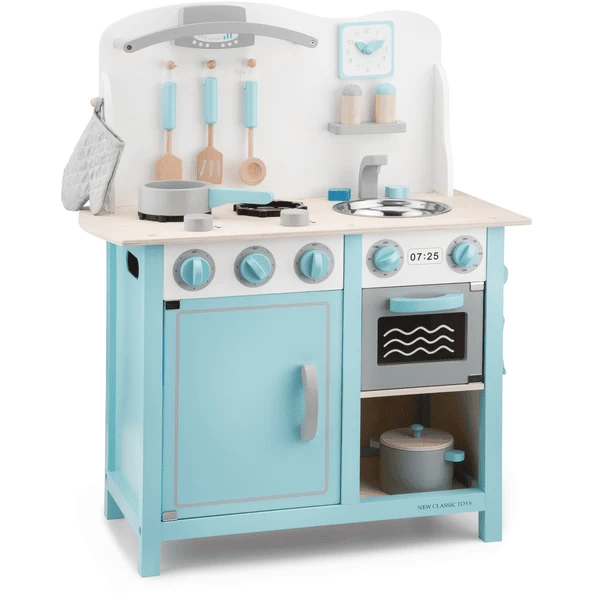 Deze prachtige keuken behoort tot de productlijn “Bon Ap petit ” van New Class ic Toys. Snijden, bakken, koken en klaar voor het eten! Onze kleine potten, pannen, stekken en keukens zijn een absolute must voor kleine meester-koks.