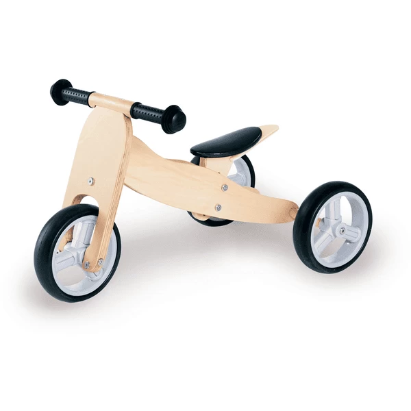 Het zadel is in zes hoogtes verstelbaar. Voelt je kindje zich in het begin nog wat onzeker? Maak er dan eerst een driewieler of een chopper van en vorm hem later om tot een echte loopfiets.