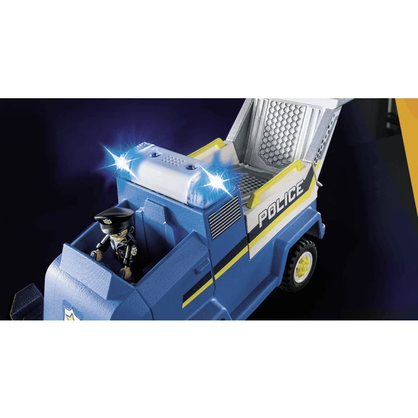 - Accessoires: 1 politieauto met kantelbare stuurkolom en licht- en geluidsmodule, alsmede inklapbare achterspoiler, lier en opbergvak, 1 minipolitieauto