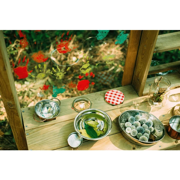 Hou van je omgeving. Alle producten van de Discovery lijn zijn gemaakt van duurzaam hout. De keuken is voorzien van handige planken voor het opbergen van alle vondsten uit het bos, houders voor je beplante struiken en een ingebouwde plantenpot voor kleine tuiniers. Creëer en schilder op het onderhoudsvriendelijke tekenoppervlak. Het bevat een decoratief windklokkenspel van bamboe en ook een klein kweekstation voor kleine landbouwers.