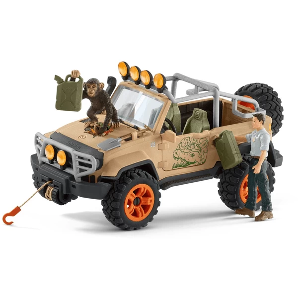 Set met terreinwagen, Ranger David, chimpansee en veel leuke accessoires. De Schleich ® figuren zijn allemaal tot in detail gemodelleerd, liefdevol geschilderd en staan voor educatief waardevol spel.