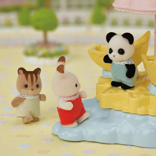Als je de ster op het dak van de carrousel draait, draaien de stoelen en het sterplatform.